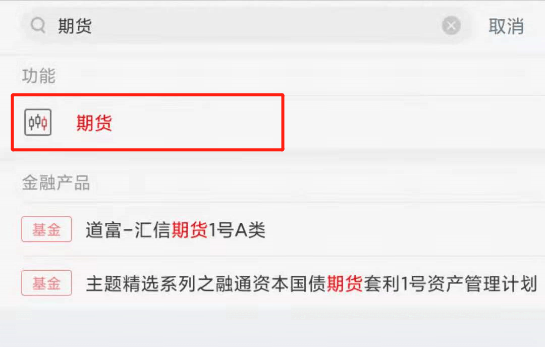 - 1下载安装中国工商银行手机APP,登录后在首页顶部搜索框中输入“期货”,搜索结果选择“期货”功能;