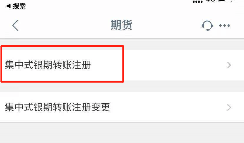 - 2选择“集中式银期转账注册”;