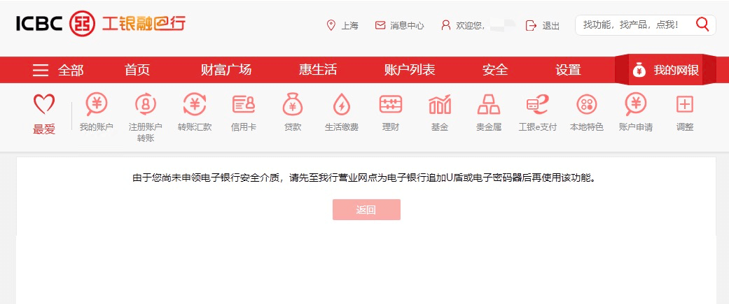 - *尚未申领电子银行安全介质用户,需先至工商银行营业网点为电子银行申请U盾或电子密码器后再使用银期签约功能。