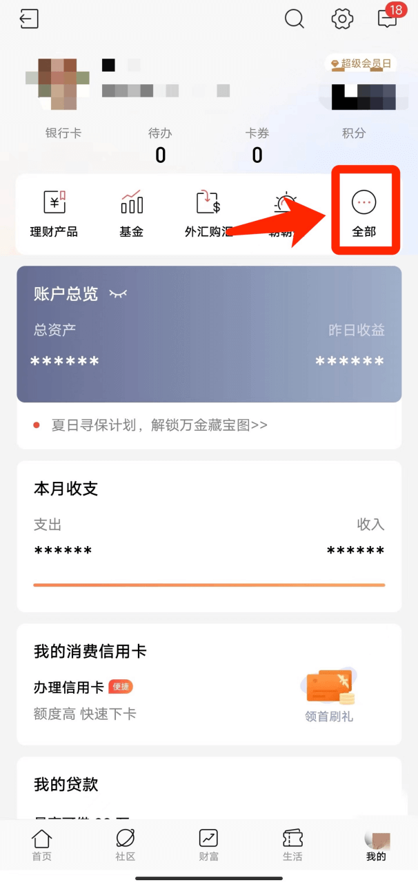 - 1下载安装招商银行APP,登录后在“我的”页面上方图标中选择“全部”;