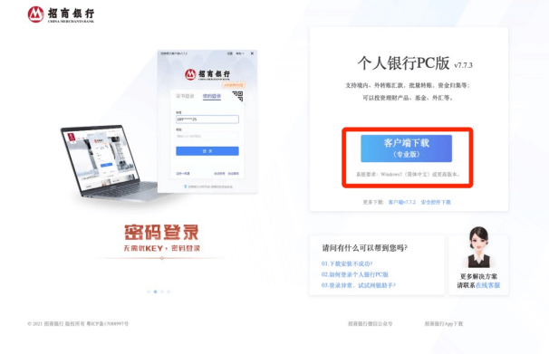 - 1已下载招商银行客户端可略过此步骤。登入招商银行官网首页,点击“个人银行PC版”,完成客户端下载。